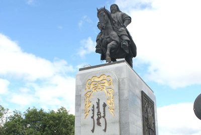 合銅像成吉思汗雕塑以神箭著稱,勇敢善射,矢無虛發,應弦而倒。金大定二十九年,為加強大汗的權利和防御外敵的襲擊,鐵木真組成一支宿衛隊,哈薩爾被任命為兀勒都赤,負責大汗營帳的警戒和監督重任,成為成吉思汗的佩刀保衛者,勇猛的扈從,得力的騎馬成吉思汗雕塑。